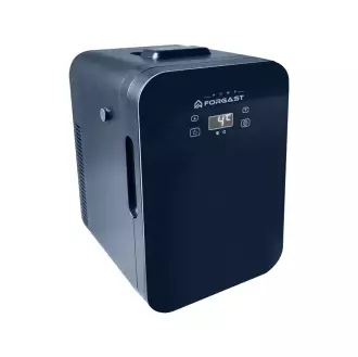 Termoelektrická mini lednice FORGAST FG05717 je kompaktní, multifunkční zařízení, které umožňuje jak chlazení, tak ohřívání uložených produktů. Díky svým malým rozměrům a možnosti napájení jak z domácí sítě, tak z autozásuvky, je ideální volbou do kanceláře, auta, hotelu i na kempování. Vyznačuje se moderním designem, odolným černým pouzdrem a přehledným displejem teploty, což umožňuje pohodlné používání v různých podmínkách.