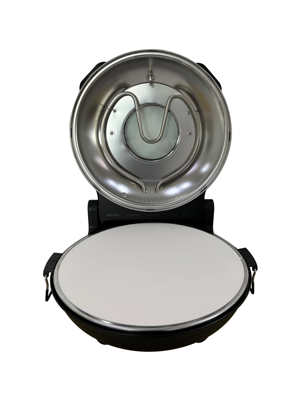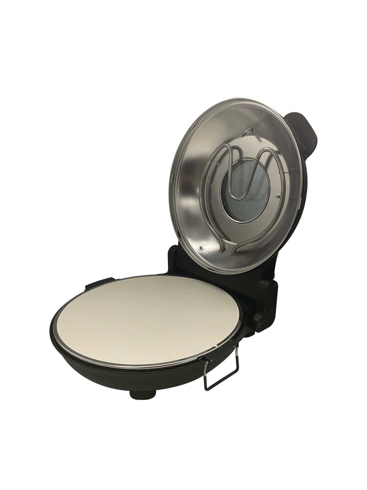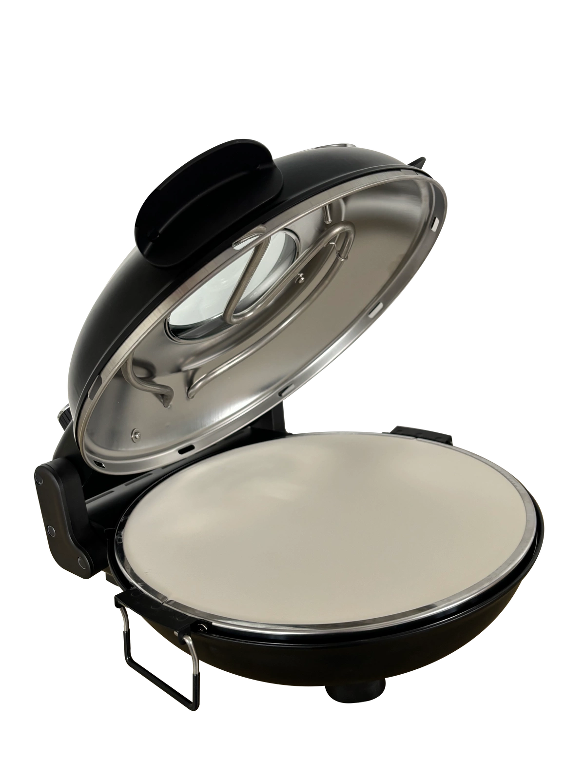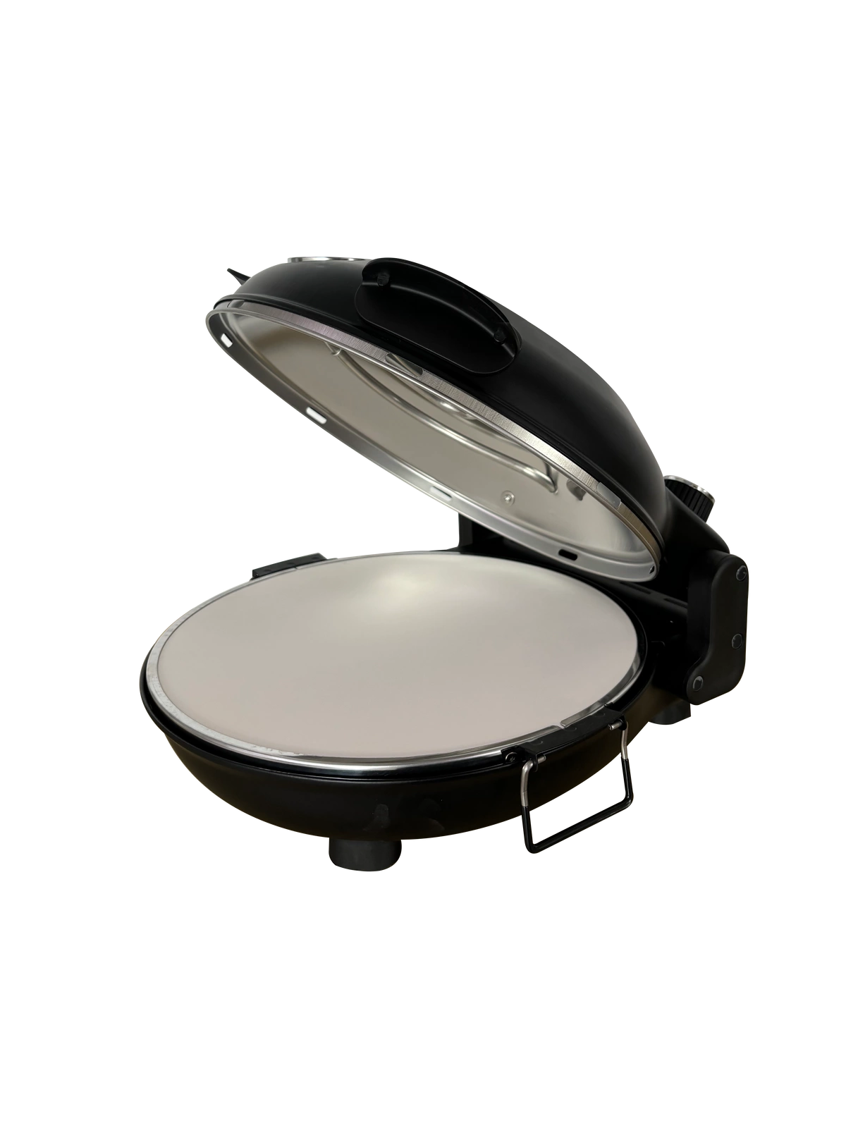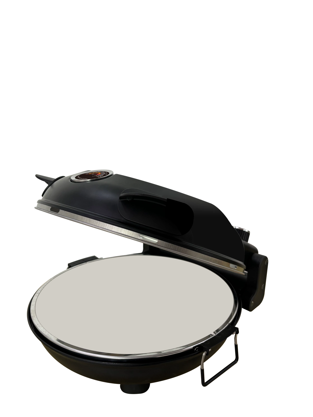 • Šamotová deska o průměru 310 mm – zajišťuje rovnoměrné rozložení tepla, což přispívá k profesionálnímu výsledku pečení a struktuře podobné pizze z pece na dřevo. Šamotový kámen výborně akumuluje teplo, což umožňuje získat křupavé dno.