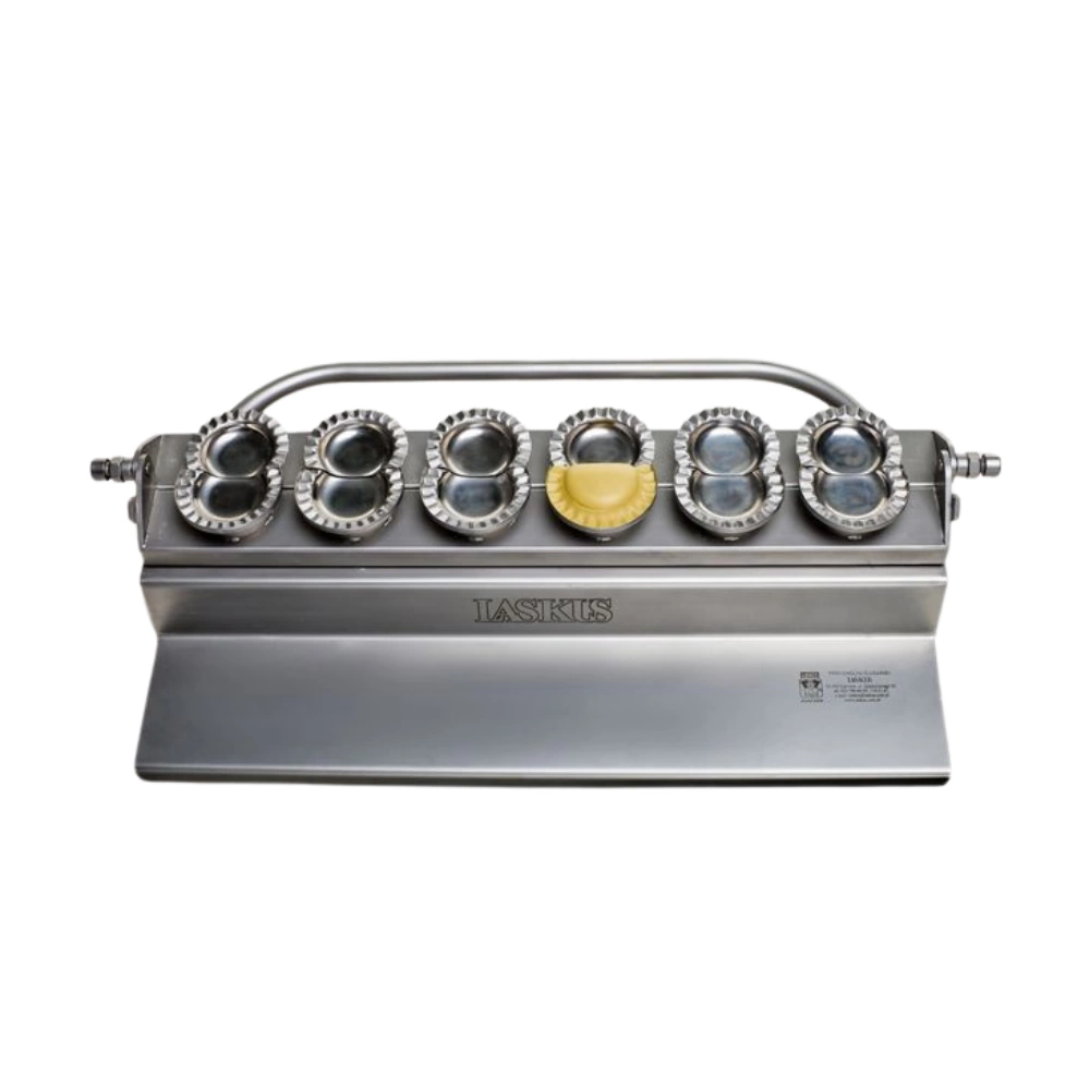 Ruční knedlíkový lis LASKUS byl navržen s ohledem na osoby, které si cení domácích výrobků a efektivity práce v kuchyni. Díky možnosti připravit šest knedlíků najednou je zařízení ideální během rodinných setkání, svátečních příprav nebo v malých gastronomických provozech. Pevná konstrukce z nerezové oceli a precizně vyrobené formy zaručují, že každý knedlík bude mít rovnoměrný, estetický okraj. Lis je snadný na obsluhu a dlouhá rukojeť umožňuje pohodlné a rychlé slepení těsta s náplní.