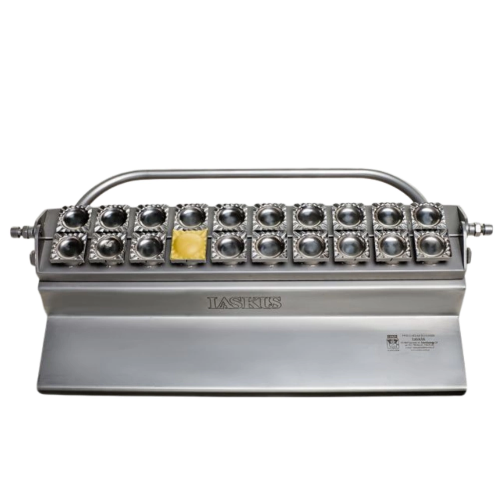 Ruční lis na ravioli LASKUS byl navržen s ohledem na ty, kteří si cení domácích výrobků a efektivity práce v kuchyni. Díky možnosti přípravy deseti raviol najednou je zařízení ideální při rodinných setkáních, svátečních přípravách nebo při práci v malé gastronomii. Pevná konstrukce z nerezové oceli a precizně provedené formy zaručují, že každé ravioli bude mít rovnoměrné, estetické okraje. Lis je snadno ovladatelný a dlouhá rukojeť umožňuje pohodlné a rychlé spojení těsta s náplní.