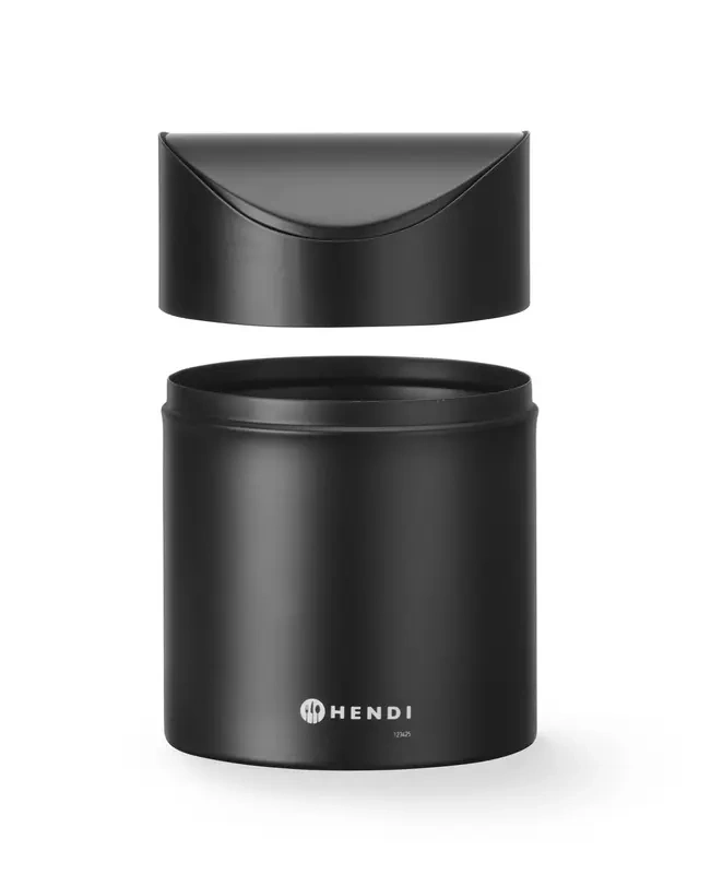 Stolní odpadkový koš s výklopným víkem, 1,2 l, černý prům. 12 x V 16,5 cm HENDI 440773