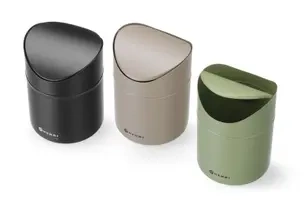 - Pohodlí při používání: Výklopné víko lze rychle sejmout, což umožňuje snadné vyprazdňování koše a čištění jeho vnitřku. Malý průměr umožňuje pohodlné umístění koše i na malých stolech, v bufetech nebo na recepcích.