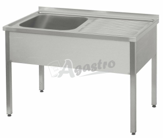 Celonerezové provedení s vevařenou lisovanou vanou a odkapovou plochou na levé straně, opláštěním čela, boků a zadním lemem vysokým 40 mm, tloušťka materiálu 1 mm. Stavitelné nohy. Základní provedení bez trnoží. Součástí dřezu není sifon.. Tuhá svařená konstrukce.