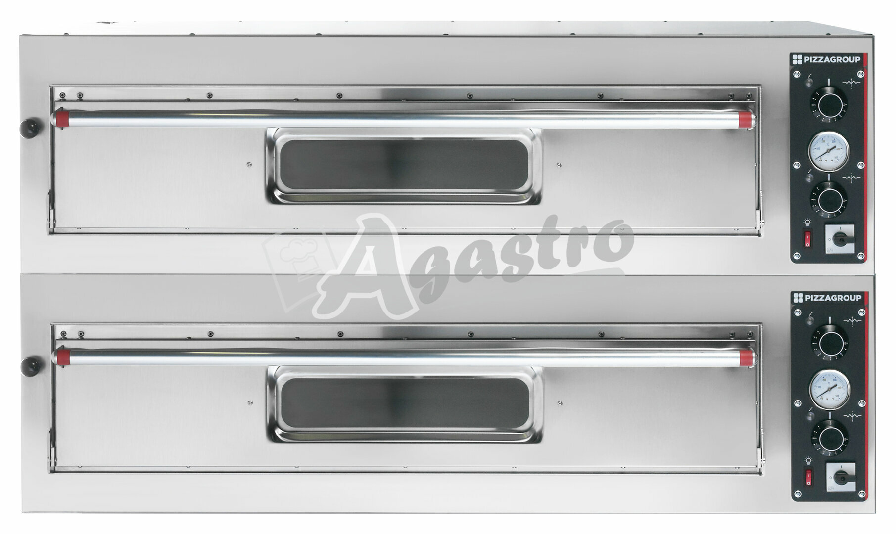 Dvoukomorová pizza pec ENTRY MAX 12L (až 12 plechů pr.34cm - komory na šířku). Modely Entry Max jsou nejprodávanější elektrické modely pizza pecí. Snadné a přehledné mechanické ovládání umožňuje individuální nastavení výkonu spodních a horních těles v komoře. Pece jsou vybaveny analogovým teploměrem (termostat do 450°C).