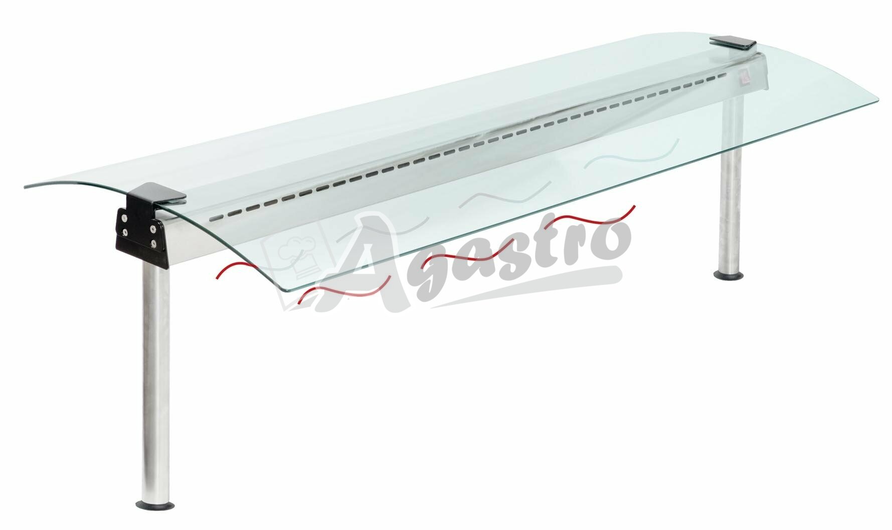 Hygienické prosklenné zákryty ASBER FS-H-CG s ohřevem a osvětlením jako doplněk k vestavným výdejním vanám. Nezávislé uchycení (montážní otvory) mimo vanu. Trubkové stojny a kryt osvětlení je vyroben z nerezové oceli. Elegantní oblé sklo je uchyceno pomocí postranních spon. Rampa je vybavena halogenovým osvětlením s vypínačem ON/OFF a kontrolkou chodu. Integrované halogenové žárovky poskytují světlo a konstantní teplo pro udržování jídla při správné teplotě.